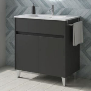 Lavabo integral cerámico extraplano, con tres perforaciones en total: una