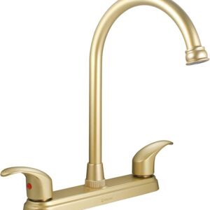 uerpo de latón: Resistente a manchas, rayones y corrosión. Maneral de Zinc: Durabilidad y solidez. Oro Cepillado: Tiene mayor brillo y resistencia. Cartucho de latón, Cuello de acero inoxidable, Cubierta de plástico.